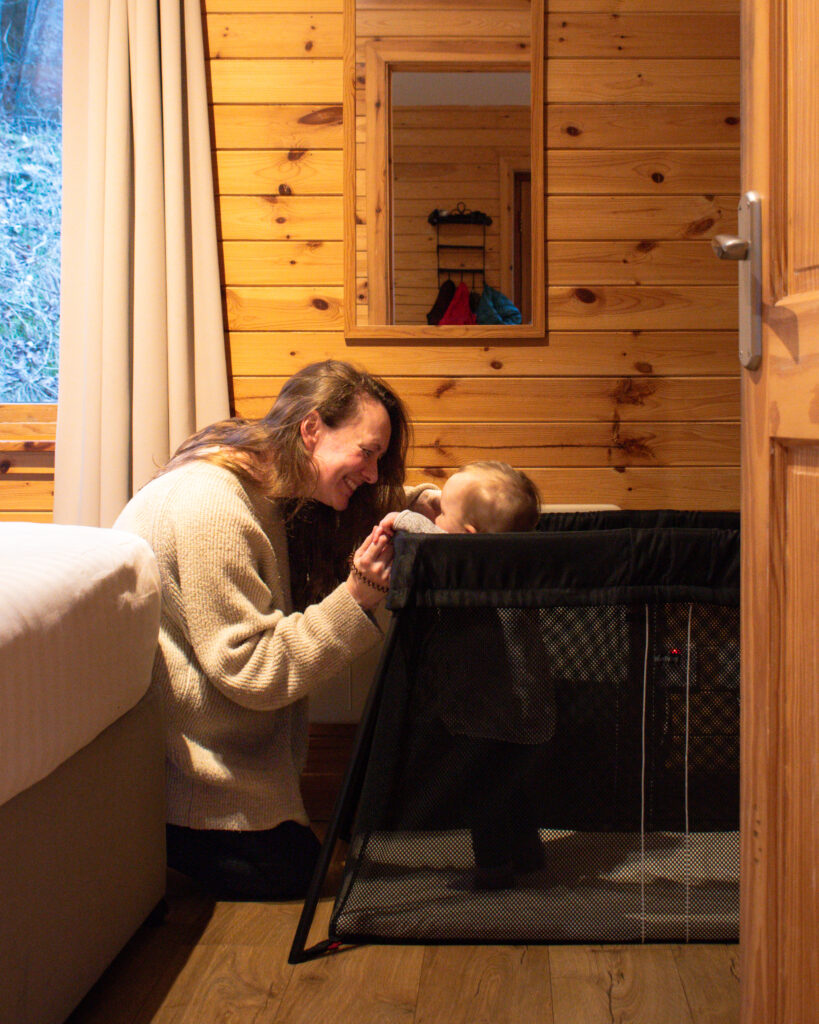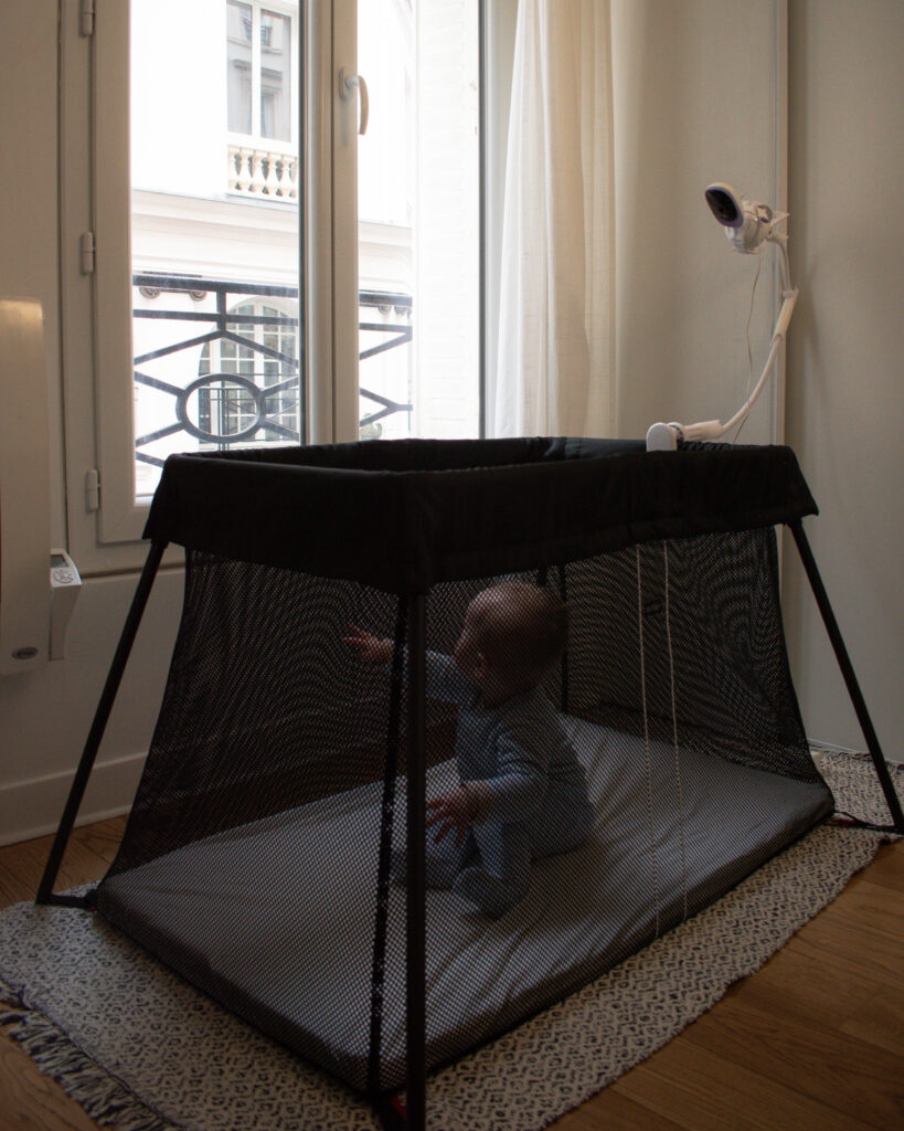 Non Wifi Baby Monitor – a non wifi baby monitor (we use a BT Monitor) means that you do not need to worry about an internet connection to ensure your monitor works. We had to get a monitor holder as the angle of our BT Monitor is such that it was tricky to set up with the travel cot. It has been great for what we needed it to do, but I am sure there are also monitors out there that could be used without needing an additional holder.