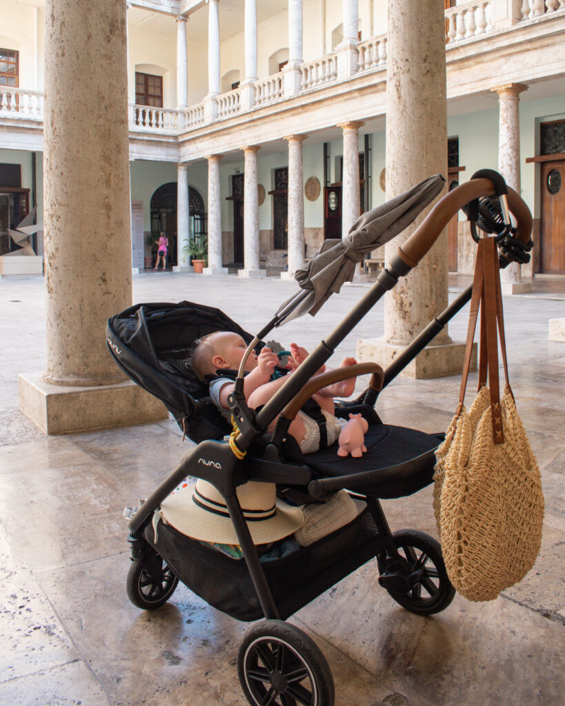 For everyday use at home, and for longer trips to stay with family and friends in the UK we use a Nuna Triv Next. This is one of Nuna’s most compact, and lightweight options. I like that it is relatively sturdy, despite being a more compact pram. Some of the super compact travel prams can feel pretty flimsy.