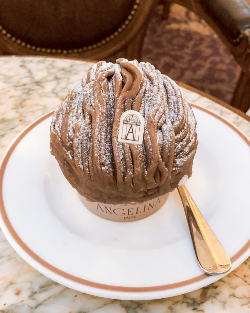 Angelina – book in for breakfast and Paris’ most famous hot chocolate and a mont blanc. If you don’t want to queue and don’t have a booking, there is a deli offering takeaway to the right of the salon.