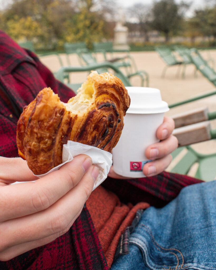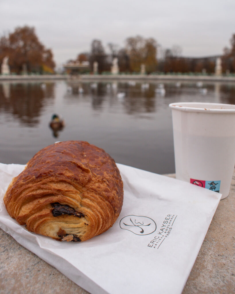 Eric Kayser – very famous chain of bakeries across Paris, and many cities around the world. But their top option is the small truck in the Jardin des Tuilleries selling a small selection of patisseries and hot drinks. Buy yourself a croissant or pain au chocolate with a steaming hot coffee and set yourself up for breakfast at the chairs around the ponds in the gardens.