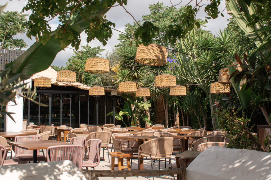 Finca La Plaza – a lovely courtyard setting in the oldest building at the heart of the foodie hot spot of San Gertrudis. At night, it has a wonderfully romantic feel, with the lights strung between the trees. Traditional dishes and flavours, elevated to fine dining. Good wine list. Reservations recommended.