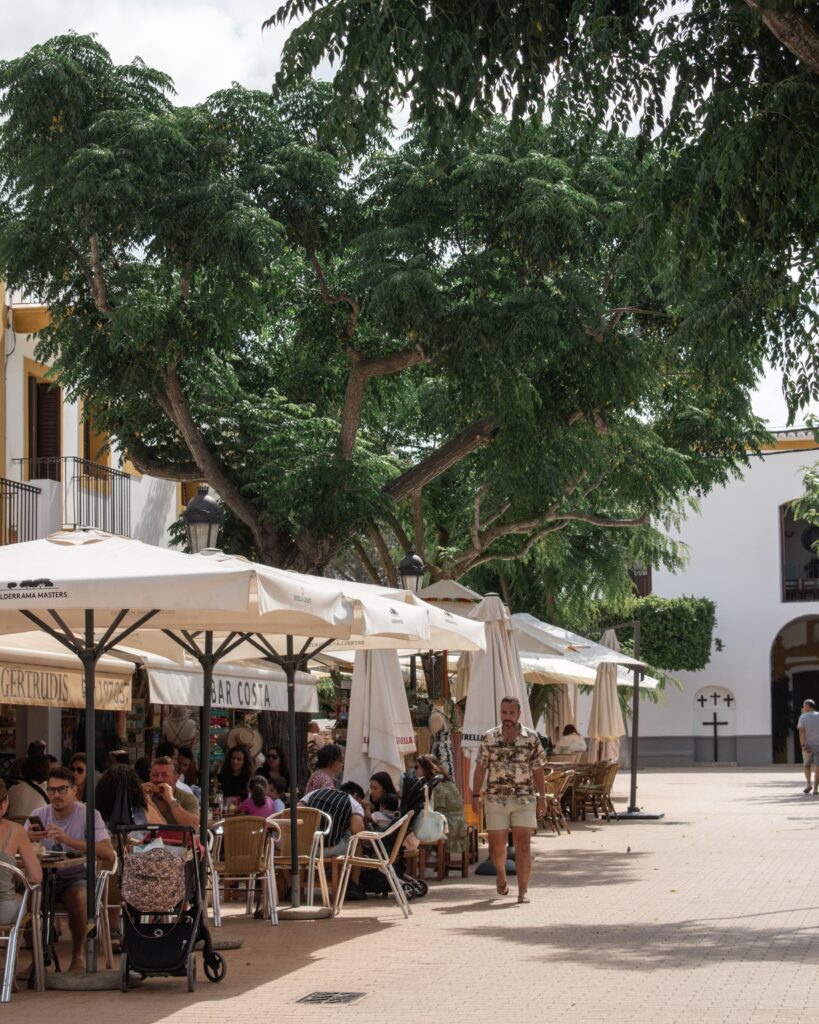 San Gertrudis – a foodie’s delight! This lovely traditional whitewashed town is awash with superb restaurants, cafes and bars. There is a weekly market, and lovely shops selling bohemian homewares and fabrics open every day.