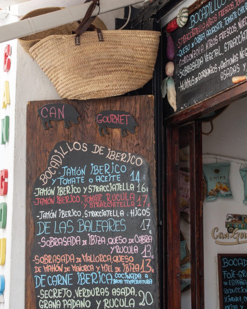 Can Gourmet – one of the best sandwiches I have ever eaten! In the heart of Ibiza Town, they serve nothing but bocadillos. These traditional Spanish sandwiches are served in delicious soft baguettes, usually simply filled with jamon, tuna or cold cuts. Can Gourmet is pricey for a sandwich – around €11 – but given how good they are, and the more mediocre food you can find in nearby restaurants for the same price, I think it more than worth it.