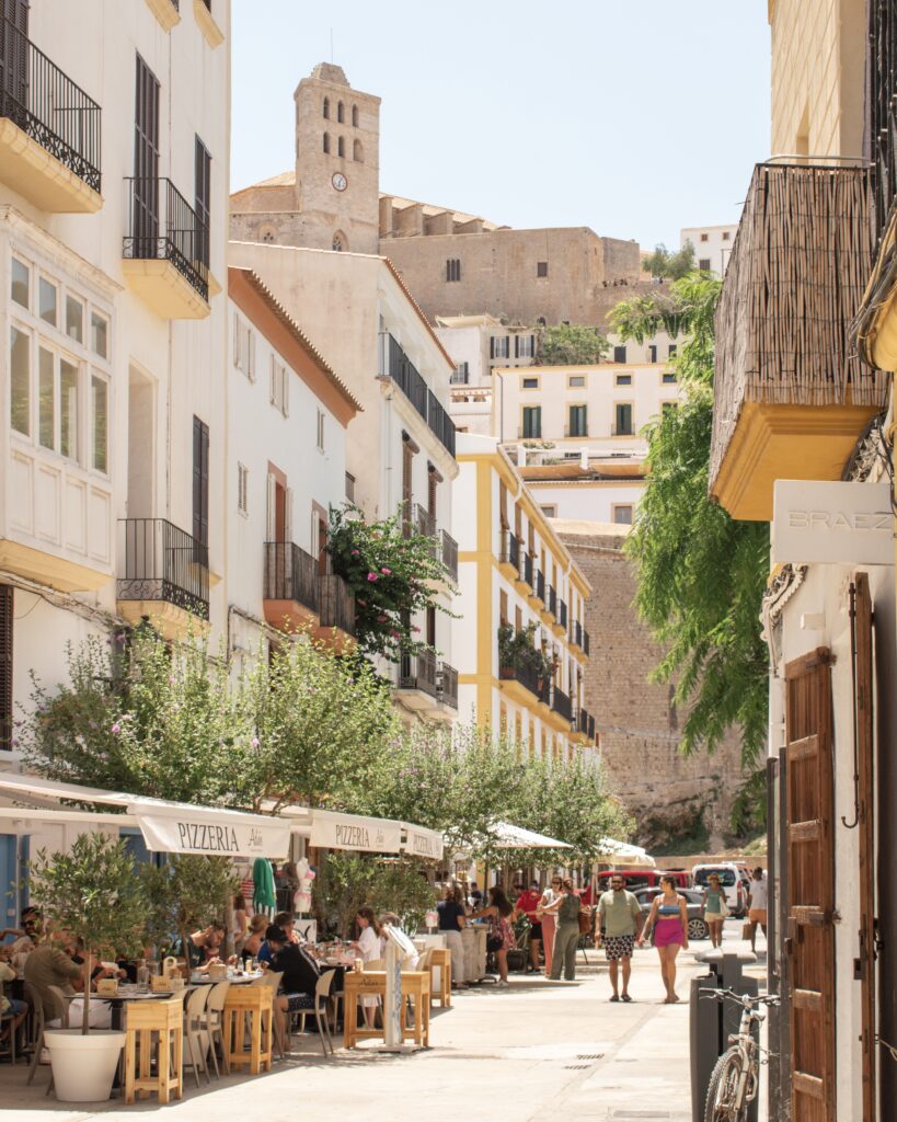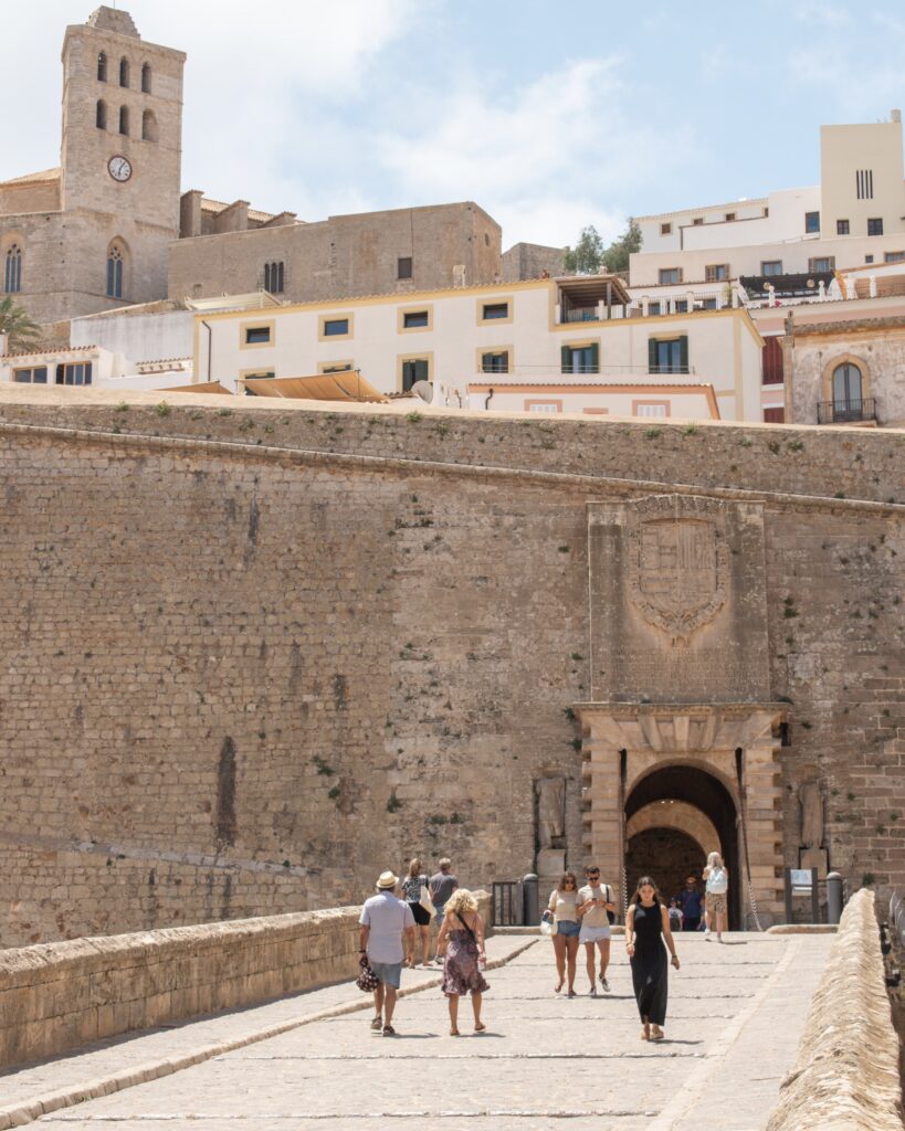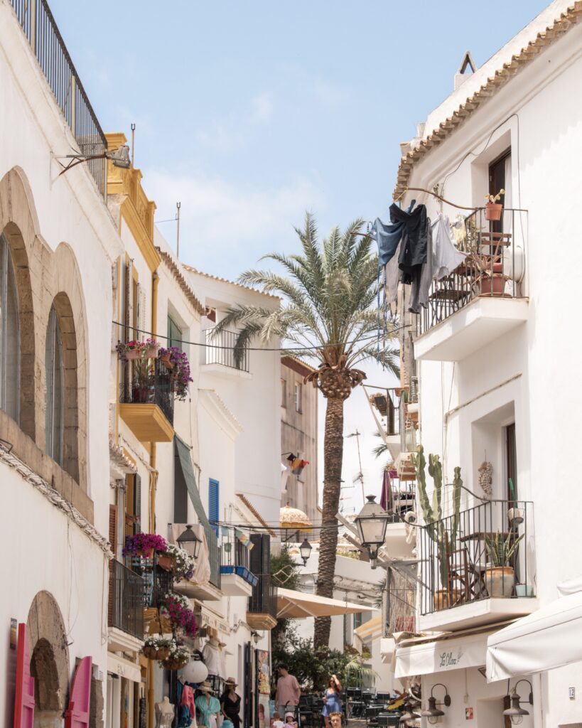 Ibiza Old Town – the exception to this northern Ibiza guide! Whether you arrive in Ibiza by ferry or plane, you will pass close by or through Ibiza Town. It is the largest city on the island, with the main port and airport both located here. But the main draw for most visitors is the beautiful Old Town. The majority of the Dalt Vila – meaning “high town” in the local dialect – was built in the 16thC. The main entrance to the Old Town is through the Portal de ses Taules, an enormous arched gate through the vast fortified walls. At the centre of the Old Town, sits the 13thC Cathedral of Santa María de las Nieves, and the Castell d’Eivissa. The best way to explore Ibiza Old Town is on foot, wandering the narrow streets and pretty alleyways. Just be aware that much is cobbled, and steep, and in the summer months very hot!