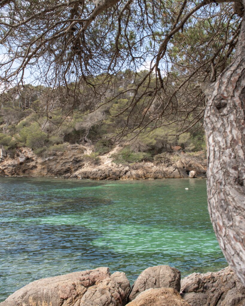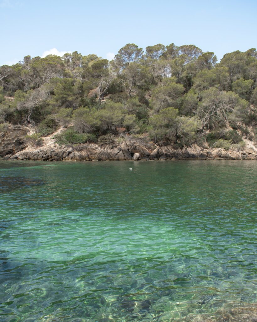 Cala Llyena – a wide stretch of white sand surrounded by pine trees. There is a small kiosk, and sunbeams for rent. The waves can be a bit choppy on a windy day, but on a calm day it is great for families as the water is shallow for a long way out.