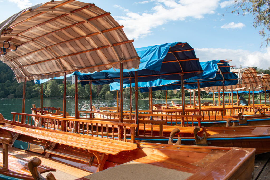 Pletna Boat Ride – the famous pletna boats are unique to Lake Bled. These long wooden boats, powered by a single oarsman, are similar to a gondola. In 1740, twenty two local families were given exclusive rights to ferry religious pilgrims across Lake Bled to worship on Bled Island. It is still a restricted profession today and many of the modern oarsmen descend directly from the original 22 families. Motorised boats are not permitted on the Lake.