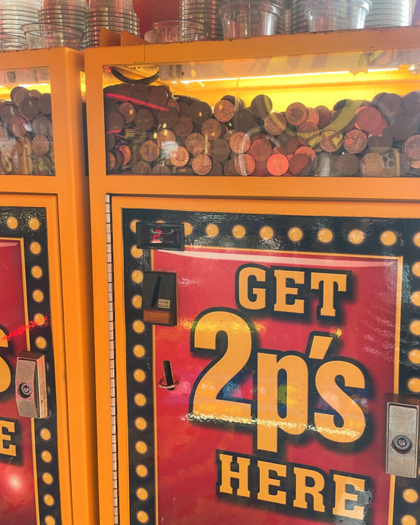 Try your luck at the arcades – if you haven’t been to a British seaside town before, the 2p slot machines are probably a bit of a perplexing addition of lightweight gambling to this guide! It is a simple concept. Games cost a 2p piece to play, and as you and others play, the 2p pieces pile up on a shelf in the machine. The aim is to get your 2p to land in such a way that it knocks a whole pile of 2p coins off the shelf for you to collect. I doubt anyone has ever won more than £1 – and most people substantially less than that! They have been a feature of arcades at the British seaside since the 1960s, and have somehow become one of the iconic images of the traditional British seaside holiday.